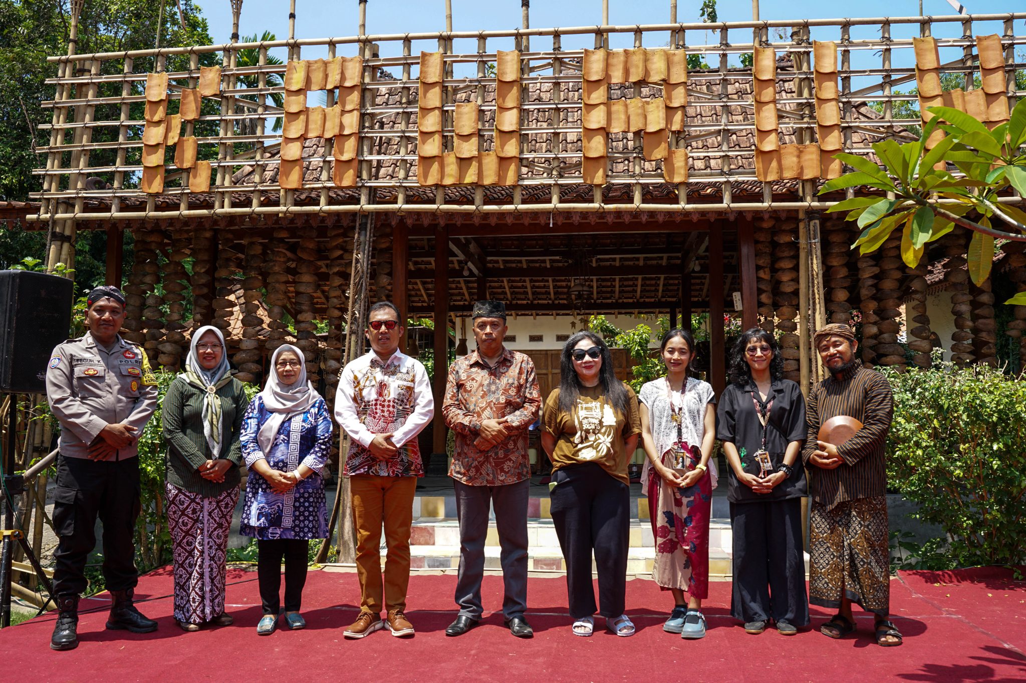 Tari angguk telah usai. Gerakan terakhirnya memantik tepuk tangan riuh dari para penonton. Saya sempat tepuk tangan sejenak, lalu beranjak bersama ibu saya ke joglo yang berada di samping panggung. Rupanya, joglo ini sudah ditata sedemikian rupa untuk menghadirkan suasana dapur pedesaan. Ada meja panjang berisi berbagai sajian. Sedangkan di sudut joglo, berdiri sebuah karya instalasi. Judulnya “Wewarah Pawon Simbah”, karya Barikly Farah Fauziah.