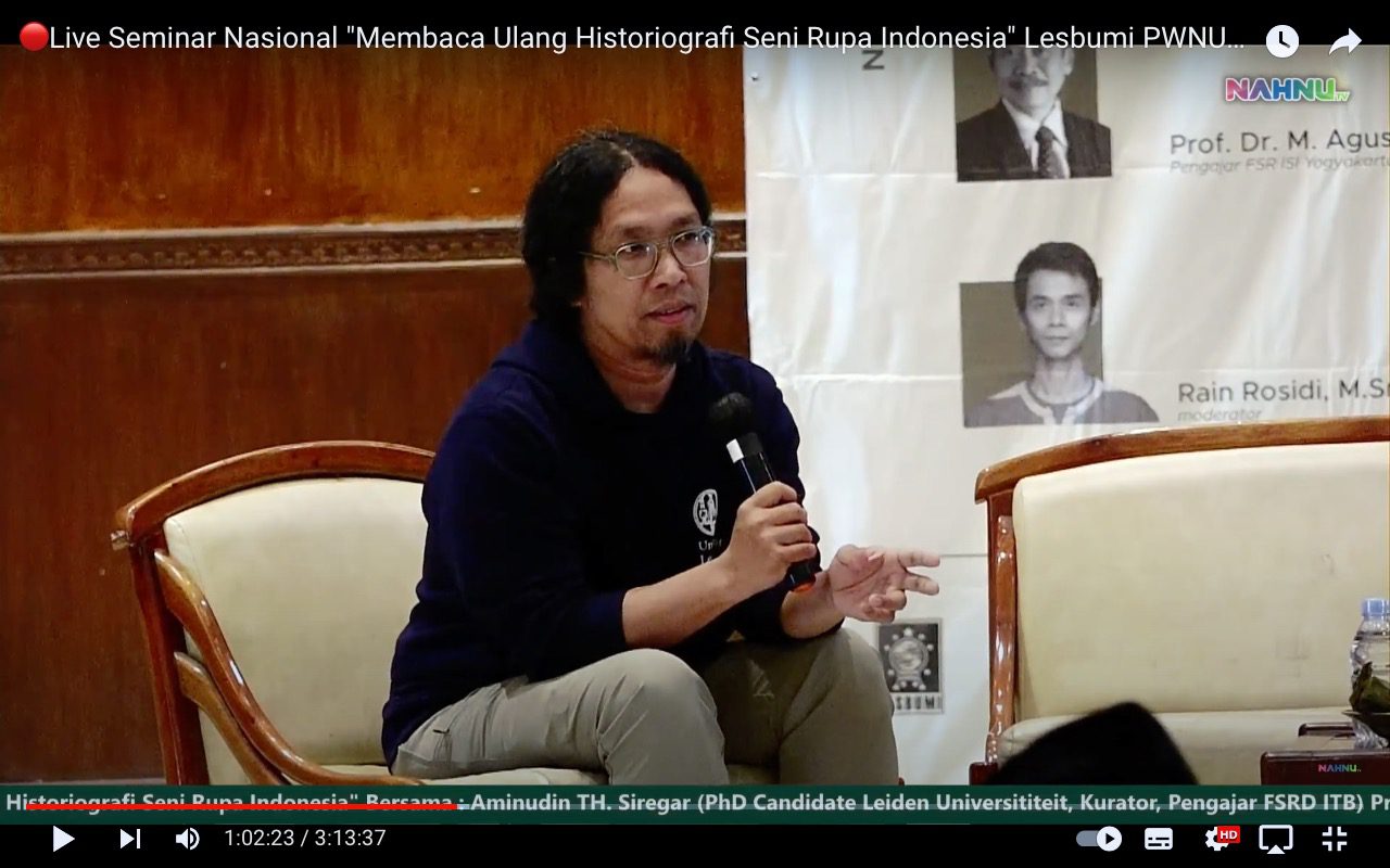 Uraian di atas itulah yang disampaikan dalam sesi seminar nasional: “Membaca Ulang Historiografi Seni Rupa Indonesia” yang dihelat dalam rangka Harlah Lesbumi #63 dan Dies Natalis Institut Seni Yogyakarta #39 pada 29 Mei 2023 lalu. Sesi seminar ini secara khusus dibuka oleh Ketua Lesbumi PBNU, KH. M Jadul Maula, disusul Ketua PWNU DIY, Dr. KH. Zuhdi Muhdlor. Selain itu, Nano Warsono, seniman sekaligus staf pengajar ISI Yogyakarta juga turut membuka, mewakili Rektor ISI Yogyakarta, Prof. Dr. Timbul Rahardjo yang mendadak berhalangan hadir.