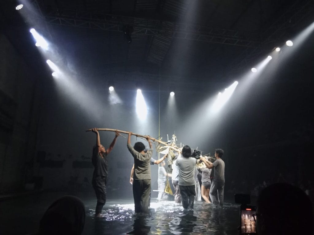 Dari pertunjukkan ini, saya seolah disuguhi wacana kritis terkait parade ketimpangan dan bagaimana kita secara akbar memang digiring untuk “memunggungi laut” dalam waktu yang sangat lama. Laut sejak dulu hanya jadi subordinasi daratan saja, imajinasi kita akan laut kerdil, tanpa ada progres, meskipun kita dicap sebagai bangsa maritim; negara yang ditaburi pulau sana-sini serupa kismis di atas sebongkah roti. Kegagapan dalam mengartikulasikan dunia maritim yang belum tergarap dengan baik hingga sekarang tak hanya tampak pada bagaimana kebijakan hari ini tak ramah pada perairan, tapi juga bagaimana orientasi pembangunan berjalan. Ekonomi biru yang digadang-gadang bisa mendorong pertumbuhan ekonomi dan meningkatkan kesejahteraan masyarakat, justru memberi tembakan tak kasat mata tepat di kepala para nelayan-nelayan kecil dan masyarakat kecil yang sumber mata pencahariannya dieksploitasi. Bahkan dalam ranah bahasa pun kita memunggungi laut. Dahulu kata-kata “mudik” identik dengan aktivitas pelayaran laut, tapi belakangan bergeser maknanya menjadi prosesi pulang dengan kemacetan di jalan-jalan saat lebaran tiba.