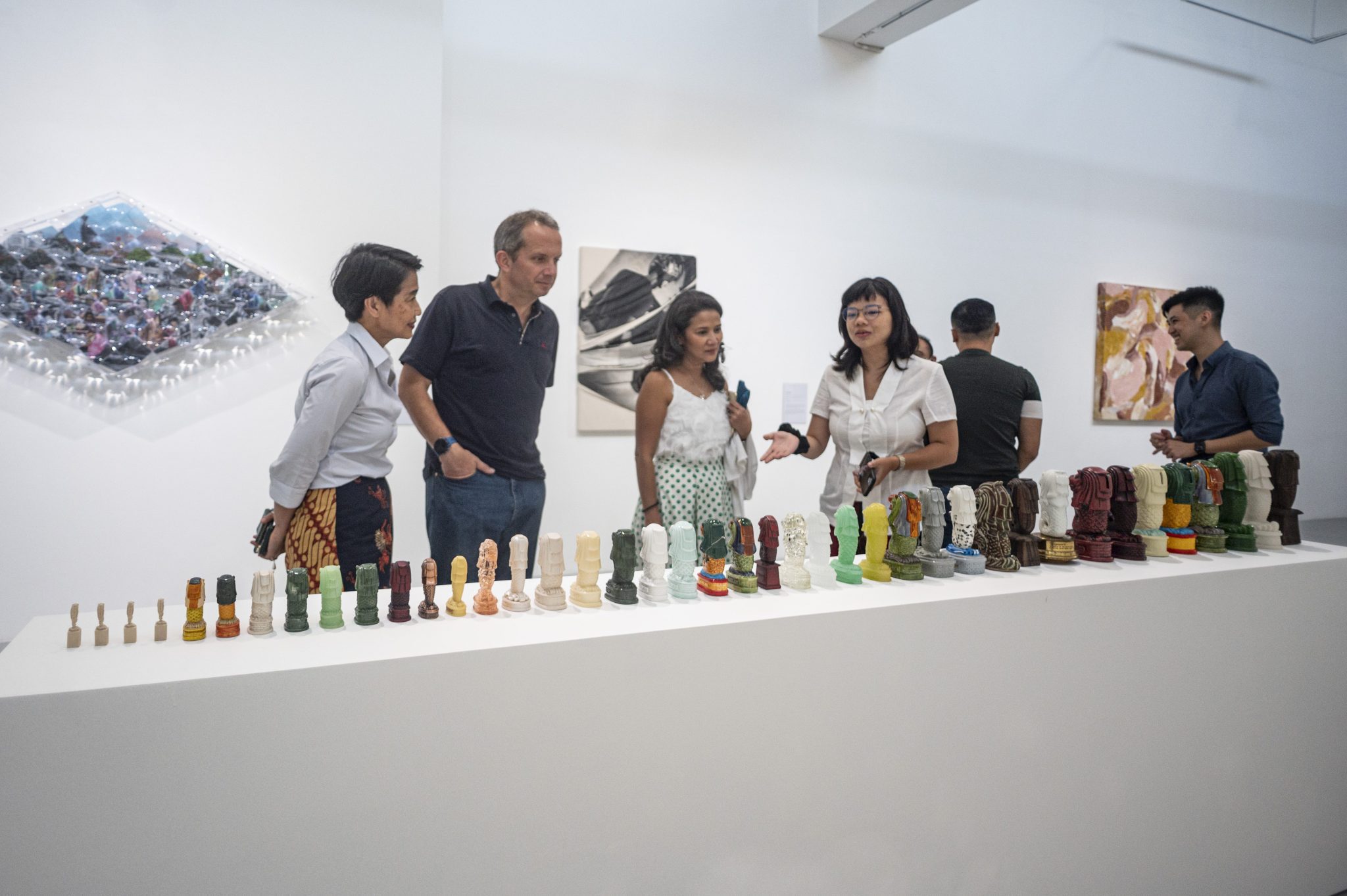 Dengan cara ini, Kannapan menampilkan karkul sebagai entitas patung itu sendiri, dengan tekstur dan bentuk yang menantang stereotip dan persepsi terhadap medium. Sementara Melissa Tan, dengan sangat apik mengolah kertas hingga melibatkan baja tahan karat atau stainless steel dan resin. Sehingga menurut Tung, karya ini membawa publik pada ekspedisi visual, tempat bertemunya lanskap organik dan manipulasi manusia.