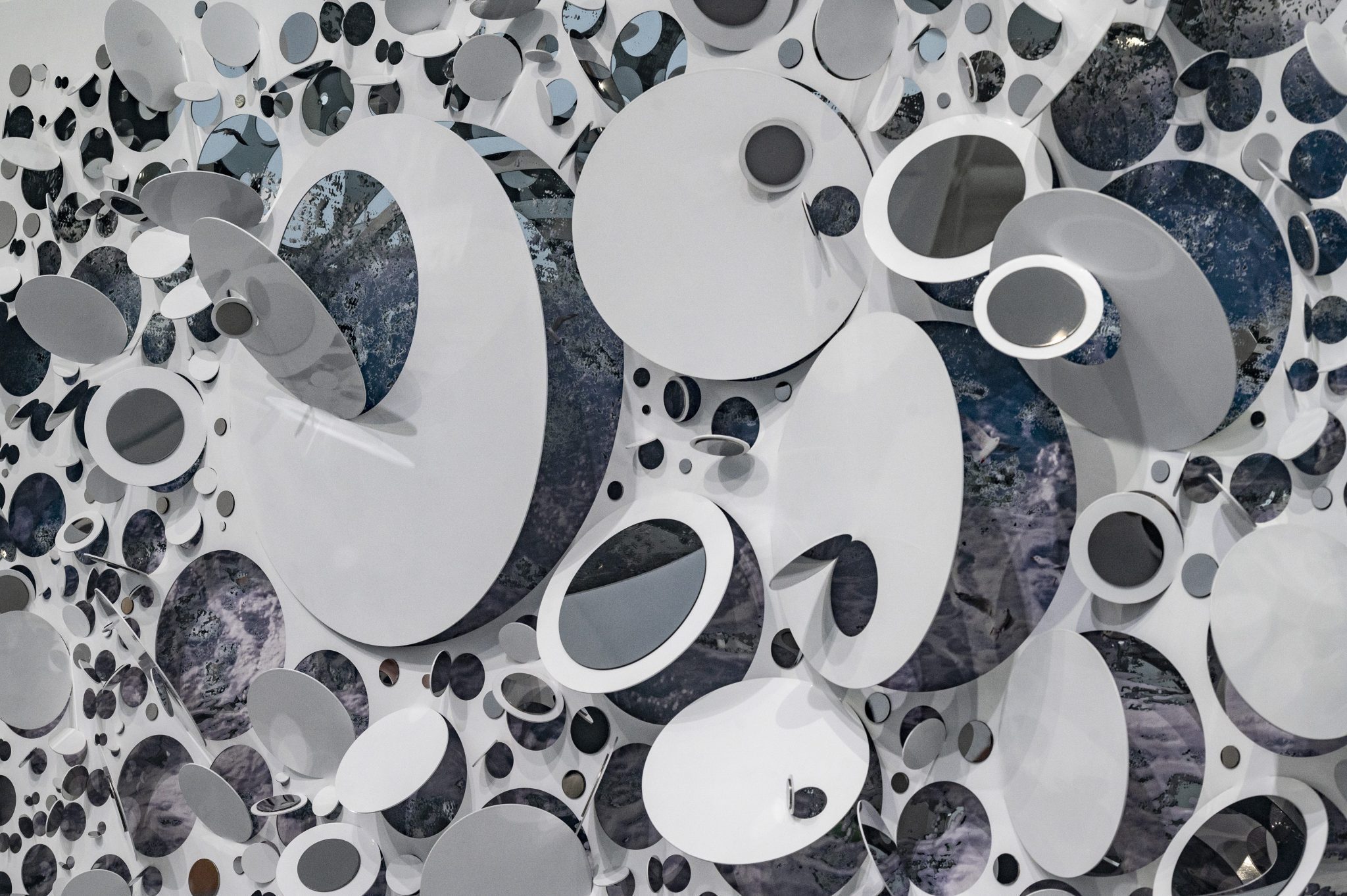 Jika Tay dengan “Chromatic Solstice” dan “Diachronus Geometry,” mencoba membangun lanskap imajinatif yang melampaui batasan geografi nyata. Maka “The Rest of the Time” dari Mary Bernadette Lee alias Mrydette ini berupaya merangkum praktik artistiknya, yang mencakup pengumpulan pola rumit dari alam melalui lukisan berskala besar, dengan tekstur dan simetri yang diadaptasi dari kerang. Karya ini dikerjakan Mrydette secara berkala dan dilakukan setiap akhir pekan dan hari libur, sebuah representasi berapa berharganya waktu luang (leissure time). Dari kedua seniman terakhir, selain eksplorasi medium, tampak menyongsong persoalan hegemoni manusia atas alam maupun kritik ekologi sebagai pernyataan kekontemporeran.
