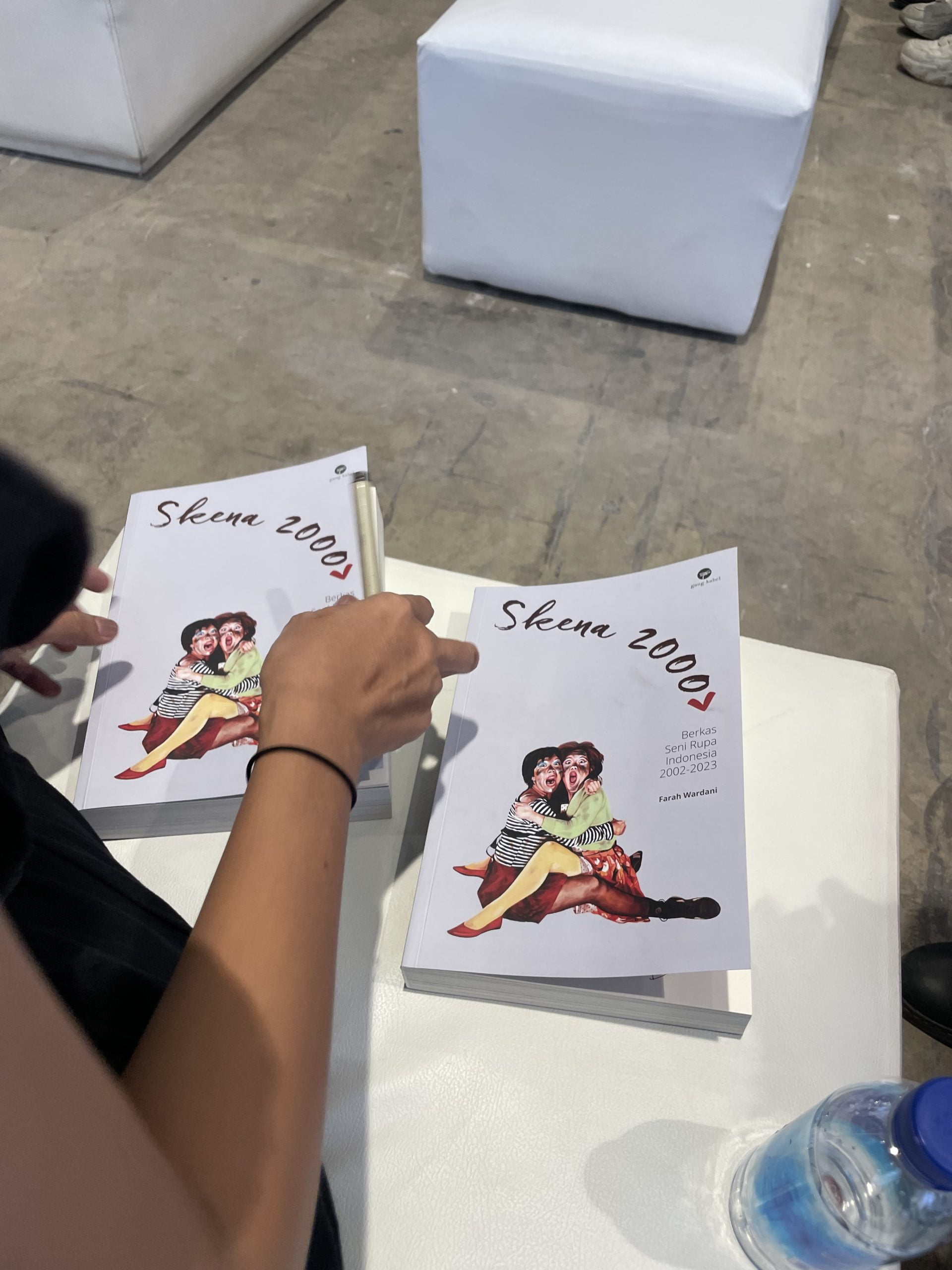 Farah Wardani, kendatipun ia melakukan kerja-kerja polisi skena (mengamati dan mengulas skena atau ekosistem seni rupa pasca-Reformasi) dalam buku Skena 2000>: Berkas Seni Rupa Indonesia 2002 – 2023, argumen-argumennya tidak didaratkan pada snobisme dangkal, melainkan pada sebuah pelacakan atas perkembangan dan pengembangan seni rupa kontemporer Indonesia pasca-Reformasi. Buku ini membawa kita kepada fragmentasi catatan-catatan kritis Farah Wardani selama dua dekade lebih sebagai palugada (apa lu mau, gue ada) seni terhadap infrastruktur seni pasca-Reformasi.